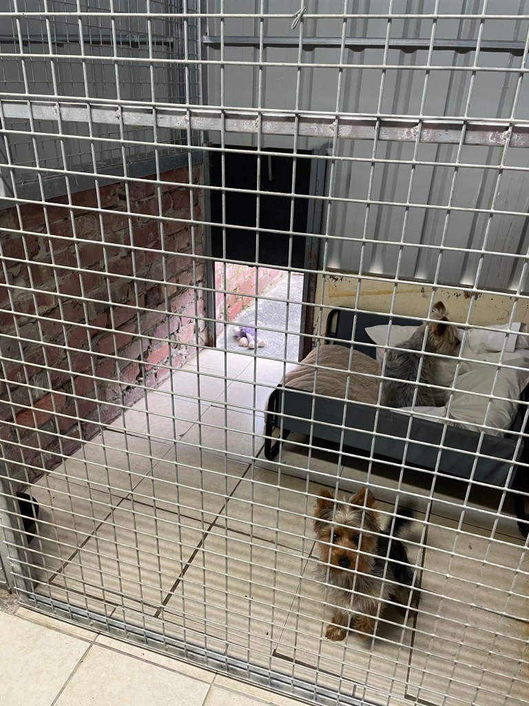 All dogs have their own personal space, everyone sleeps indoors and all dogs are given adequate free running in safe pens outside during the day.